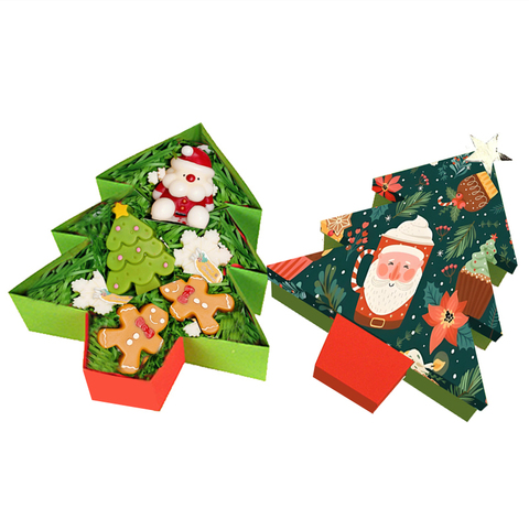 Scatola di carta rigida personalizzata a forma di albero di natale scatola di carta rigida riciclabile per alimenti contenitore di cioccolato per biscotti vuoto confezione regalo