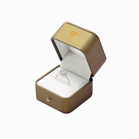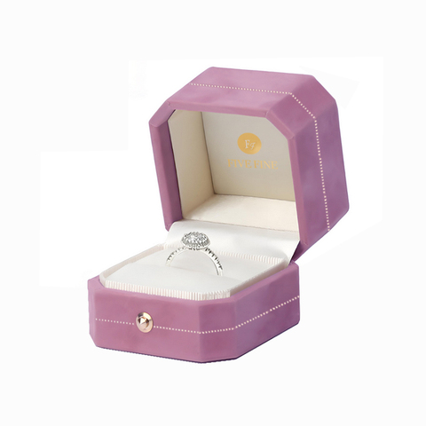 Luxo veludo roxo jóias caixas veludo anel caixa embalagem com logotipo estampagem ouro personalizado